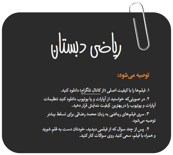 اول - تمرینهای منتخب از کتاب ریاضی (آپارات – پیکوفایل – تلگرام)